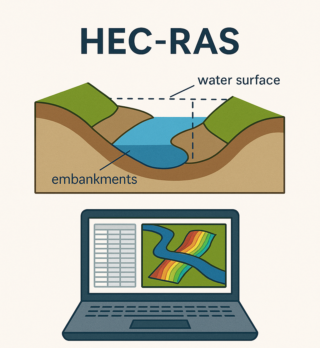 HEC-RAS, developed by the US Army Corps of Engineers, is ideal for fluvial systems and large-scale riverine projects. While less suited for dense urban modeling, it’s robust for simulating river flows, floodplain mapping, and backwater effects. Floodhound uses HEC-RAS when the project involves dam breaches, bridge hydraulics, or rural floodplain planning.